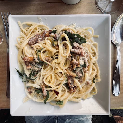 Really liked this place. A cosy atmosphere and great food. The couple who run it are charming. We both had pasta dishes which were fresh and really tasty. Everything is prepared to order so it can take a little time, but who wants to rush through an evening. A bonus for us, they allowed us to bring our two small dogs and gave us a table where they had room to...