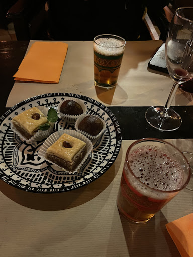 Les saveurs d'Orient au pays des Pastilles. Si la façade extérieure ne paie pas de mine, une fois passé la porte d'entrée, nous voici transporté dans les saveurs d'orient, de part le cadre atypique !! le seul bémol a mon avis, mais qui reste mon avis uniquement, et certainement des couleurs pas suffisamment claires sur les mur, mais ceci reste je le répète, peut etre pas a mon gout tout simplement. Maintenant, pour le reste, vous étes accueilli par le patron "Yacine", qui assure l’accueil, le service, et qui veille au bien être des clients, tout ceci avec sourire, et discrétion a la fois. Vous êtes accueilli aussi avec un verre de thé a la menthe, la carte est simple, sans chichi, quelques sortes de couscous, 3 tajines, quelques desserts, 2/3 entrées, vins, eaux.... N'hésitez pas a réserver a l'avance, c'est conseillé, surtout pour connaitre les jours pour les tajines car a chaque jour sa tajine, il y en a 3 différentes, mais qui sont élaborées a tours de rôles. Nous avons pris un couscous chacun, copieux, servi dans des plat et non a l’assiette, ce qui nous a permis de goûter un peu des ingrédients qui n’étaient pas dans notre choix individuel de départ. Les saveurs sont la, la viande moelleuse, les légumes impec, la semoule fine, el les assaisonnements au gout de chacun.