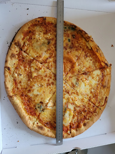 Pizza XL censé être de 50cm, ovale, difforme, ou le diamètre est biaisé selon les pizzas de 5, 10, 20 cm selon la chance que vous aurez à la loterie !
