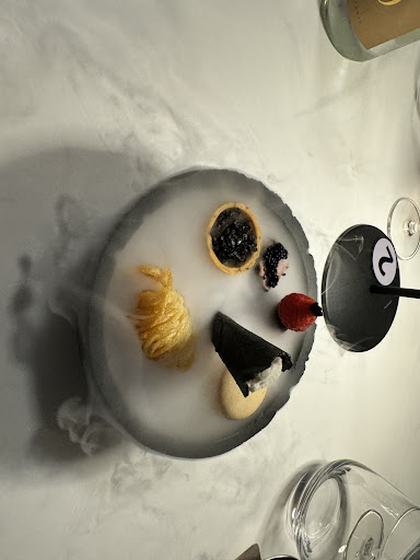 En ce qui concerne le repas en lui-même, c'était plutôt bon. Après j'ai du mal avec les mises en scène : trop de fioritures tuent la dégustation. Elles participent au concept, certes, mais n'apportent rien d'exceptionnel. J'ai même eu du mal à déguster la bouteille à la mer servie dans une demi bouteille, ce qui n'est pas des plus pratique... Petit bémol sur cette dernière : une des 2 noix de Saint Jacques était caoutchouteuse, mais ça peut arriver.