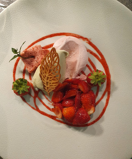 Le vin qui, pour le prix est de qualitĂ© plus que moyenne. Lâaperitif de 13,5 ⏠/ verre pour un cocktail ratĂ©. Les 5 fraises de mon dessert de battant en duel dans une assiette dĂ©sespĂ©rĂ©ment vide, surtout la sauce au citron suracide oĂč elles ont Ă©tĂ© pochĂ©s qui nâest mentionne nul part sur le menu .