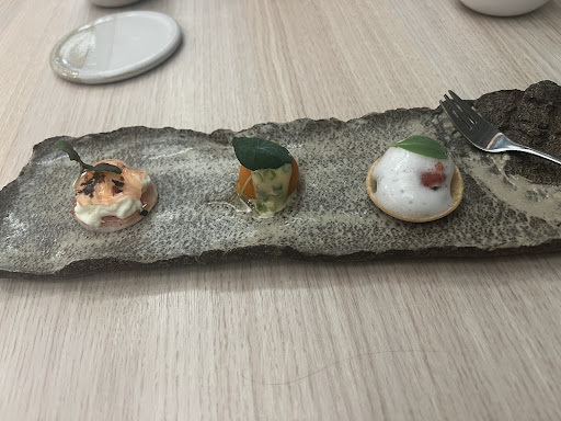 On ne vient pas au restaurant pour manger dâinsipides carottes rĂąpĂ© Ă la menthe ou de la purĂ©e de lentilles. Enfin on aura pas trop eu a en pĂątir vu quâil fallait quasiment une loupe pour apercevoir les BouchĂ©es. Nous aurions prĂ©fĂ©rĂ© que notre assiette soit remplie.