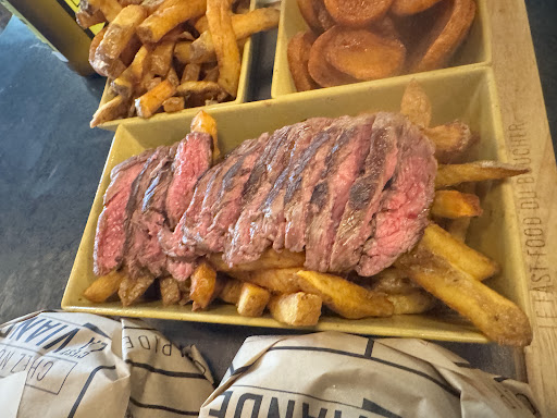 Une très belle découverte ! Nous étions sur l’A7 et souhaitions dîner hors de l’autoroute. Nous nous sommes arrêtés ici par hasard, alors que nous suivions la direction d’une enseigne de fast food beaucoup plus connue. La mise en avant du côté français de ce fast food nous a donné envie d’essayer. Résultat : personnel très accueillant, qui nous a servis après l’heure de fermeture, des burgers et des frites de très bonne facture, meilleurs que dans certains restaurants plus “chics” et dans tous les cas largement meilleurs que chez la concurrence McDo et BK. Les produits semblent très frais, le pain est bon même en toute fin de journée, le dosage garniture / viande / pain / sauce est idéal, les frites sont très bonnes,… Et tout ça pour le même prix que les autres enseignes. Pour moi c’est même bien au-dessus de 5 guys, pourtant très réputé, et bien plus cher. Je souhaite à cette enseigne de poursuivre son développement et son succès, en espérant qu’au passage les prix et la qualité resteront ce qu’ils sont...