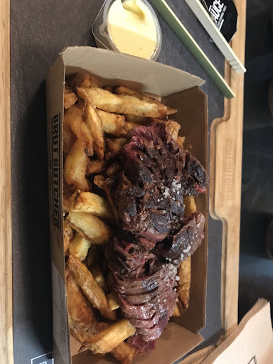 Read morePremière et dernière expérience chez Brut Butcher. Frites servies froides. Salade à manger avec une pince. Un super coin détente avec faux feu de cheminée mais vrai place de jeux, avec des enfants turbulents, juste à côté! Personnel apathique. Viande au goût de frites, mais frites molles avec le goût de la viande, particulier comme concept. Tout pourrait être bien, mais la design prime...