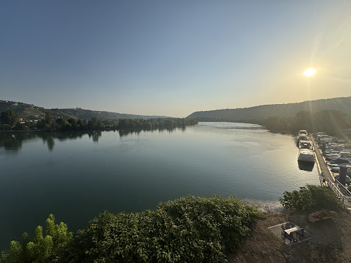 Read moreAlthough we had some initial confusion about whether our reservation was actually a reservation or just a REQUEST for a reservation, ultimately we checked in and the staff helped carry our baggage. We're on bikes and were pleased to have them stowed in a locked closet of a garage; we were surprised at the 7 euro charge, which was not expected, but at least the bikes were safe. We asked for two glasses of wine to celebrate our arrival, and the host went out of his way to find a dry white for us. The hostess insisted she carry them to our room along with pate/crackers. The restaurant meal was first class! The food was delicious, the presentation elegant, and the old-school, grand room ambience worked well in this setting. Huge windows provided a stunning view of the Rhone and this town's pleasure craft marina. The AC functioned in our room without a problem, crucial in this humidity. The morning buffet was fine, and we got extra coffee at no charge. Rain precluded a timely departure for us on our bikes, but the staff encouraged us to take our time to decide -- no pressure. We left about 1:30 pm, with no surcharge for such a late check-out. Nothing was inexpensive, but we got quality all the way. This is a tiny town that seems to be suffering; Le Bellevue is a bright spot we were happy to enjoy...
