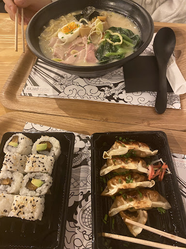 Read moreNous avions déjà mangé dans un kajiro Sushi et ça s'était relativement bien passé. Mais hier soir (dimanche 27 août) c'était un peu la cata... Pour la prise de commande et sa réception, rien à dire. Nous avons été servi à l'heure. La personne en charge de mettre la commande en sac nous demande de vérifier si tous les articles sont dans le sac, il manquait nos 2 ramens et un client avant nous aurait pu partir sans ses gyozas s'il ne l'avait pas fait remarquer. Je pense qu'il faudrait améliorer l'organisation et clarifier la disposition des articles sur le passe-plat car c'était déjà assez fouillis en début de service...