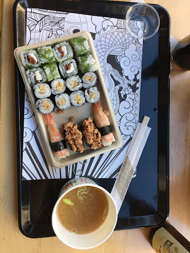 Nous avons donc pris notre commande et en arrivant chez nous... Une soupe miso avait été remplacée par un bouillon (lequel ?) Les bouillons des ramens étaient fades et vraiment différents par rapport à nos dernières visites à celui de Roussillon. Beaucoup de nouilles et très peu d'autres garnitures (ça fait très soupe de pâte). La cuisson des oeufs étaient différents d'un ramen à l'autre, l'un était mollet et l'autre poché (alors que nous avions commandé les deux même) et un oeuf sur les deux n'était pas "frais" Les gyoza végé sont incipides et farineux. Du coup le ramen est décevant... Les sushis comportaient de l'avocat assez noirci et avec un goût de pourri et n'étaient pas tous de la même taille. Les sushis desserts préparés avec du riz vinaigré c'est vraiment pas l'idéal... Et une nous avons retrouvé des bouts d'avocats dans ce dernier.... Inadmissible Tout ça pour une 60aine d'euros à deux. Nous n'y remettrons...