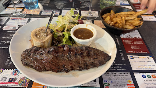 Had entrecÎte (ribeye) saignant (medium rare) with fries and Moellaux au chocolat (I.e. A small brownie with molten chocolate core). The meat was excellent quality and perfectly grilled - the fries unfortunately not crips but that can happen. Wine (rosé of the house) dessert and coffee also fantastic. Service was friendly and quick. Altogether a great lunch time. Even though it is at a street it is not too loud and with all the people around eating and chatting it felt rather vibrant than annoying. Would go there again...