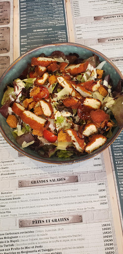 Sauf que.... Nous sommes dans un restaurant, et ce qui compte c'est la nourriture. Les pizzas sont plutôt de bonne taille et suffisamment garnies. Par contre, niveau prix ils se font plaisir. Vous allez payer presque 20€ une pizza qui n'aura quasiment aucun goût. Si vous pensiez vous rabattre sur des pâtes, j'espère que vous n'aurez pas trop faim, parce qu'il faudra les cherchées dans l'assiette. Nous avions également pris une salade en entrée. La salade césar n'en avait que le nom. Le pauvre empereur doit se retourner dans sa tombe. Salade en sachet et deux morceaux de poulets plus tard, nous arrivions au dessert qui eux sont bons mais surtout industriels. Je vous parlais plus haut du personnel. Alors oui il est sympathique, mais niveau tenues, vous chercherez longtemps à les différencier des clients. Entre celui en jogging et celle avec le ventre à l'air, je vous laisserai faire votre choix.