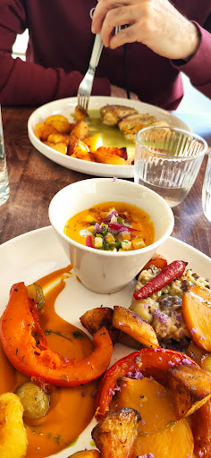 Read moreCe resto, on l'a d'abord choisi car situĂ© non loin de l'A20 et notĂ© correctement sur google.le resto Ă©tait plein un mardi vers 13h, ce qui est svt bon signe! Mon conjoint a pris un menu et moi l'assiette vĂ©gĂ©tarienne Ă 21âŹ. Au dĂ©but je me suis dit c'est un peu cher pour des lĂ©gumes et fĂ©culents.... Mais alors, quel dĂ©lice!!! TrĂšs belle assiette oĂč tout est assaisonnĂ©, relevĂ© parfaitement. Jolie prĂ©sentation et bonne quantitĂ©. Cela faisait longtemps que j'avais pas aussi bien mangĂ© !!! Mon conjoint s'est rĂ©galĂ© avec le suprĂȘme de poulet et un gratin de fruits pour dessert ! La dame au service est sympathique et ne chĂŽme pas! MĂȘme le cafĂ© Ă©tait une expĂ©rience sympa avec le petit cannelĂ© fait maison ... Sans oublier le pain!!! Dommage que nous habitions si loin!!! Mais si on doit voyager sur l'a20, on sait dĂ©sormais oĂč...