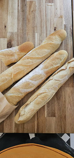 Un concept original, traiteur, boulangerie, pâtisserie, une chaîne de restauration française avec des produits frais, d'une grande variété. Parfait pour un repas traiteur chaud rapide sans attente. Accueil très bien, avec stationnement, lieu propre dont wc. Le seul bémol fut le refus d acceptation de notre toutou de 5 kg. Après plusieurs heures de route sous la pluie, nous avons pas pu nous restaurer pour déjeuner à l'intérieur. Dommage pour ce désagrément. Le même jour, à Angoulême ou environ nous y sommes arrêtés pour le petit déjeuner. La même enseigne mais cette fois-ci boulangerie et sandwicheries. Nous avons consommé le petit-déjeuner. Délicieux. Plusieurs formules de petit-déjeuner du pain cuit sur place, confiture, beurre, jus de fruit boisson chaude, viennoiserie... de plus pouvons compléter le petit déjeuner avec d' autres gourmandises avec des prix très résonnable. extra. Notre toutou a été accepté avec une grosse gamelle d eau . Équipe super sympathique la joie de vivre très familiale...parking vaste, lieu propre, vue sur une partie de la préparation boulangerie et la sandwicheries. Lieu propre...