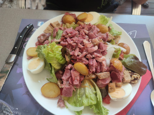 Read moreThe food is amazing. The place is worth it. I took a menu, i had a aveyronnaise salad, if you like roquefort this is for you. The main dish was an astet najaceoise, its pork with persil and fries. The meat was soft and savoury. It is a traditional dish of the village. And I totally recommend it.. The dessert was nice too. Considering the big quantity, I think that the price was actually fair. It's a...