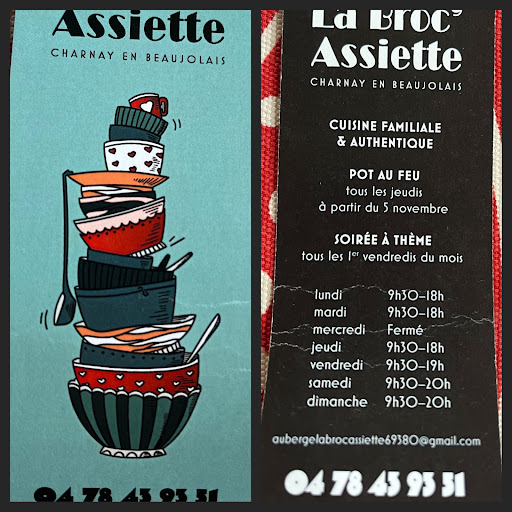 Arrêtez-vous de chercher Vous êtes au bon endroit Vous voulez de l’authenticité du vrai du bon du terroir du vrai bouchon Lyonnais C’est ici au Broc assiettes en plein beaujolais 20 mm de tassin Une cuisine fait maison oû tout prends son temps le mijotage Les légumes de saison Ici le temps s’arrête , vous êtes bien savourez les bons produits de la région la charcuterie ( extra ) le fromage ( hum ) le beaujolais goûtez le avant de !!!!! Les maîtres de ce lieu sont adorables très commerçants vous ne serez pas déçus Pour les prix je vous laisse juge Tout simplement incroyable .Un dimanche à Charnay un des plus beau village du beaujolais classé Réservez avant , un conseil d’amis et oui vous avez compris que j’adore le lieu et ce merveilleux restaurant atypique loin des...