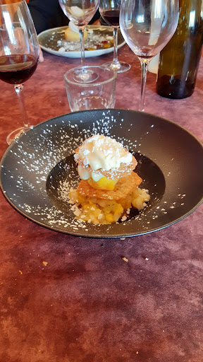 Read moreCadre sympa. Personnel hyper sympa et agréable. La patronne a dû se faire opérer du sourire, mais le chirurgien a oublié d'ôter les points. Nous y sommes allés avec mon épouse pour la St Valentin : c'est la 1e. Ce sera la dernière. Pour une facture à 125€, rien d'extraordinaire. Le filet de bœuf que j'ai mangé tenait plus du pneu : mes machoires "rebondissaient" à chaque coup de dent (à 100 lieues d'un filet). Les légumes, cuits à l'anglaise, mais sans saveur… La mignardise en entrée, ni à boire, ni à manger. Le duo de foie gras, servi au compte goutte, posé sur 2 tranchounettes de pain de mie grillé. Le dessert, un pavlova et sa meringue pas cuite, qui collait au palais, quant on arrivait à la décoller de l'assiette. Sans oublier le vin bouteille servi, que l'on a heureusement pu se faire échanger : un vin doux naturel de rasteau en guise du Rasteau commandé. Rien à voir. Sachant que ce vin cuit, initialement servi (par mésentente), hyper sucré, était la suggestion pour s'assortir avec le foie gras ??? Il aurait dû, si nous avions été amenés à le conserver, nous accompagner tout au long de...