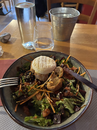 Read moreLe cadre est assez agréable, l'équipe assez sympathique, cependant ma grande salade fut franchement pas exceptionnelle, manque d'assaisonnement et parfois des choses qui ont craquées sous la dent qui auraient pas due craquer comme ça, pour le dessert c'était correct. Les cafés froid c'était moyen car servie à la hâte 2mn après avoir servie le dessert. Pour ma part je n'ai pas forcement envie d'y revenir, même soyons honnête, carrément pas, laissons leur peut être le bénéfice du doute sur les plats...