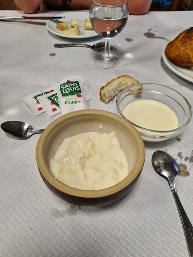 Peut-être sommes-nous mal tombés ? Salade et légumes très bons ! En revanche, le poulet (pourtant fermier et sûrement très bon à la base) était sec, comme s'il était resté trop longtemps dans le four. Sur trois fromages blancs, un seul était bon. Les deux autres devaient commencer à dater car ils avaient commencé à sécher (si, si ! C'est possible !) Quand à la crème caramel, elle n'était pas sucrée. Heureusement qu'il y avait le caramel liquide dessus pour améliorer un peu ! Et puis ce n'est pas un restaurant où emmener les enfants. Dans le menu enfant, à la place de la salade, une tranche jambon avec un gros morceau de beurre ! Vive l'équilibre ! Et à peine avions-nous fini notre plat et alors que notre fils était loin d'avoir fini le sien, on venait débarrasser et nous demander quel sorte de fromage nous voulions. Les enfants ne comptent-ils donc pas qu'on ne leur laisse pas le temps de manger tranquillement ? Ça faisait longtemps que nous voulions venir ici... Nous n'y reviendrons...
