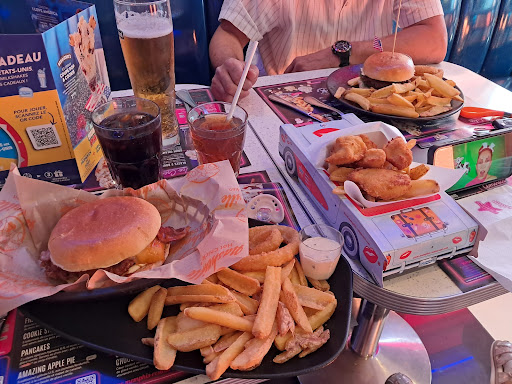 Arrivé par hasard sur le retour de vacance ce samedi 2 septembre... (Villefranche étant située le long de la A6). Nous (ma femme mon fils de 12 ans et ma fille de 9 ans) voulions nous poser en famille et manger chez Léon mais le restaurant était complet. Du coup on a repris la voiture et nous sommes tombés sur le Memphis dinner. Et franchement nous ne sommes pas déçus (merci à Léon de nous avoir recalé). L'ambiance rétro US et la déco sont au top. Sur les écran de TV nous sommes imprégné de la culture US des années 50' ( la série happy days avec fonzy et ricchy cullingham, rodeo texan, et hight light de football 🏈, concert de james Brown et Elvis...), les plats sont bons et généreux façon américain. La VIANDE EST FRAICHE et on nous demande la cuisson, les aliments sont frais. Les plats sont cuisinés à la minute. Nous avons pris un menu enfant, un double California Dreams (avec le chèvre très bon accord des saveurs) un double western bbq, un fish, 1 pepsi une bouteille de sampe, et un Dr pepper. Les plats sont vraiment copieux. Nous avons payé 73,75€. Raisonnable car c'est le prix pour un restaurant en famille. Les burgers n'ont absolument rien a voir avec les fast food. Ce sont des burgers que l'on pourrait comparer à ceux des brasseries ou Bistro mais en mode réellement US. Les pain (buns) sont selon la recette soit boulanger soit brioché. Il y a la possibilité d'avoir les même burgers mais végétarien. Le service impeccable assuré par Gianni (ce jeune homme est extra poli serviable avenant et souriant. Très rapide 👍). Le restaurant est ultra propre même le samedi midi. Nous n'avons pas attendu. Merci pour cette belle découverte so Américain. Le seul regret c'est qu'il n'y a pas de mac&cheese à la carte... Mais là c'est vraiment pinailler vu la...