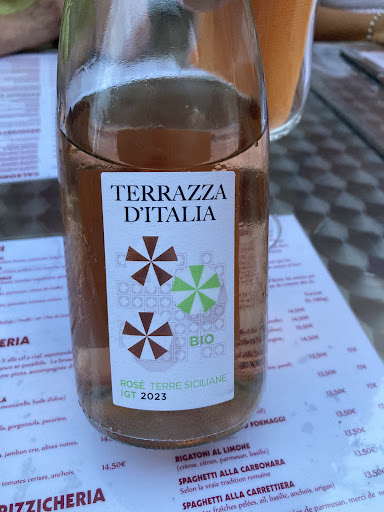 Pas de soucis pour les plats qui sont bons En revanche faites attention lorsque vous commandez un vin. Nous avons eu une très mauvaise expérience : nous souhaitions du vin en carafe le serveur nous dit qu’ils n’en servent pas . Pas de soucis, nous commandons une bouteille de Bardolino rosé ( vin de la région de Venise) le serveur nous apporte une bouteille débouchée ?! Je lui fait remarquer que j’aurais apprécié qu’il débouche la bouteille devant nous . Il me répond que les bouteilles sont toujours débouchées au bar et qu’elle le sont à table qu’à la demande du client !! (Ah bon ??) Je regarde alors d’un peu plus près l’étiquette, je vois que le vin d’après la bouteille vient de Sicile ?? (Photos jointes) Ce n’est donc pas du Bardolino… Lors de règlements je fais part de mon étonnement… on me réponds que le serveur aurais dû nous dire que c’était « un rosé d’été ! » conclusion j’ai payer une bouteille Bardolino, je me retrouve avec une bouteille ouverte de vin de Sicile qui peut très bien être un vin en cubique du pays d’Oc a...