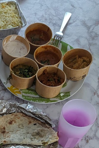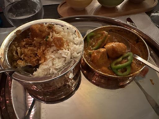 Deux plateau de 6 plat, vegetarien et a base de viande, on se les ai partagé, ben c etait pas ouf, surpresence de la coriandre, viande trop cuite, manque d EPICE ! Un comble pour de la cuisine indienne...