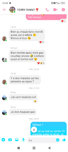 Bonjour Madame J'étais aussi présente au repas de samedi soir , je remarque que dans les commentaires vous dites que nous vous laissons des mauvaises avis suite à l'altercation que nous avons eu à la caisse . Je me permets en guise de bonne foi de vous mettre en preuve la capture d'écran de notre groupe , avec les heures et le jour . Vous verrez bien qu'il n'y a aucun complot et que deux personnes ont été réellement malade , nous avons fait le point par rapport à ce qui a été mangé et pensons que c'est dû au dessert ( crème ? ) heureusement qu'aucun des enfants présents n'ont été touchés. Pour revenir à l'altercation, je ne vous ai jamais traité de fainéante , en revanche je vous ais dit que ce n'est pas parce que vous ne POUVIEZ mais que vous ne VOULIEZ pas , ce qui est la triste réalité. Tous les logiciels de caisse d'un restaurant sont équipés pour rentrer les commandes effectuées et les régler au fur et à mesure , ce qui permet à la fin de voir ce qu'il reste si il y a des oublis. Vous faites le choix de ne pas l'utiliser, ça vous regarde mais ,nous ne sommes visiblement pas les seuls à vous le reprocher vu les autres commentaires laissez dans votre établissement. On vous remercie donc pour la référence de Muriel ROBIN que vous sortez dès que vous le pouvez , elle serait sûrement heureuse de savoir qu'elle ne tombe pas dans l'oubli grâce...