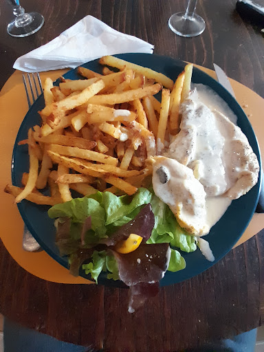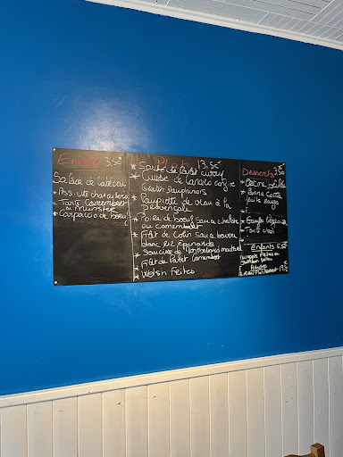 Read moreUne pépite qui s’ignore ce restaurant, en corrigeant certaines choses, ça pourrait être parfait. Déjà, je trouve que le bleu sombre des murs alourdi la pièce, une teinte plus neutre genre blanc cassé sable beige serait mieux. Bonne idée pour l’utilisation de meubles anciens, mais faut les dynamiser un peu, peigner les en blanc . Plus de déco sur les murs, miroirs chiné sur le bon coin par exemple, des références plus années 50 60. Pour les plats, très bonne qualité mais trop en quantité, ça vous handicape quand il y a du monde ! Et vous êtes débordé après. Exemple, le coquelet, un demi suffit amplement par personne. Les frites, il vaut mieux de vrai frites maison bistrot dans une petite panière que une grosse plâtrée de frites surgelées qui déborde de l’assiette. Ça coupe la fin pour un dessert. Il faut revoir les quantités. Après organisation, non ce n’est pas celui ou celle en cuisine qui s’occupe de la caisse, chacun son poste et sa tâche. Et surtout, les échanges de cuisine reste porte fermée. Voilà j’espère que ce sont des observations que vous prendrez bien, elles sont là parce que je trouve dommage de passer a côté d’une...