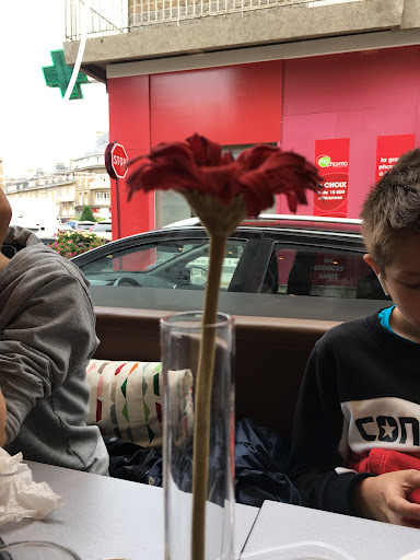 Point positif... l accueil, la dĂ©co et les desserts... j'avais tous envie de les tester. (J ai pris ce fameux cookies qui Ă©tait excellent) Limite j'aurais bien pris que des desserts en fait. En ce qui concerne les plats trĂšs peu de choix, plats sans saveur (plat du jour sautĂ© de veau, lentilles, champignons et flageolets, voilĂ ce que j'ai pris, hormis la viande et les champignons, j'ai du laisser le reste). Suis-je arrivĂ©e trop tard (12h30)? peut ĂȘtre, mais j ai franchement Ă©tĂ© déçu. Ou alors ce restau rapide n'est pas fait pour moi. Mais vu le monde qu'il y a dans votre petit restau, j'imagine que c'est sans doute moi qui suis un peu trop exigeante. Peut ĂȘtre que je reviendrais goĂ»ter vos autres desserts.
