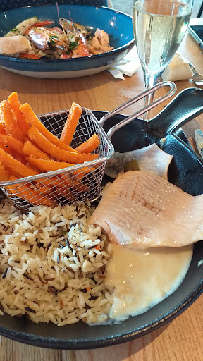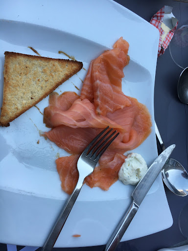 Nice outdoor seating with a view on the Lac du Der and its surroundings, friendly waiters as well ! I tried the salmon duo which was tasty, salmon seemed fresh served with toast and a nice albeit industrial cream cheese ! I tried the rouget (mullet) served with red rice and a curry sauce ; it was a DISASTER. Instead of a nice tasty filet, you get a "cupcake" of ground fish which had a horrible taste, and and unpleasing texture ! I couldn't taste the actual mullet, and the curry sauce added absolutely no flavour. The rice was somewhat ok. My friend had the copious cafe gourmand for dessert, and enjoyed it ! Will try the meat next time if I ever visit again, but stay away from the fish menu (my same friend tried the bass last time and was...