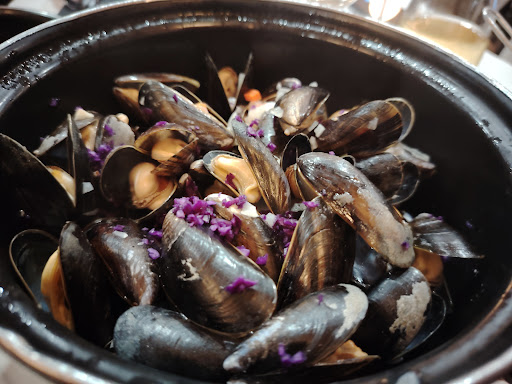 Malheureusement très cher pour la qualité. 9 euros les 3 fromages industriels, qui n'étaient pas bons. Plus de 20 euros la marmitte de poissons : une toute petite St Jacques de la taille d'une pièce de monnaie, une crevette, un morceau de cabillaud et un filet de rouget. La sauce dans laquelle baigne le tout est indéfinissable. Verre de vin blanc commandé pour aller avec le poisson, servi au milieu de l'apéro pas terminé et donc forcément chaud au moment de déguster le plat. Nous avons découvert au moment de l'addition qu'il y avait en fait 4 plats du jours qu'on ne nous a jamais proposé. Je le fais remarquer, tout en ajoutant avec humour le dos de cabillaud sauce langoustine fait envie... Silence radio. De toute façon et ça me désole de le dire mais le service était catastrophique. De la part du monsieur au masque noir, qui a beaucoup de mal à cacher qu'il aimerait être partout ailleurs sauf ici. Désagréable, pas bonjour, pas au revoir, pas ça vous a plus, expéditif et pas du tout à l'écoute, c'était hyper déroutant. Votre apprenti au moins, avait le sourire derrière le masque (le seul et unique sourire de cette soirée). Il a eu beau oublier les couverts, les verres, l'eau, et ne pas savoir ce que signifiaient les plats, au moins il était prévenant et à l'écoute. Je suis navrée de publier un tel commentaire car ça ne m'est jamais arrivé et j'aimerais soutenir les restaurateurs dans cette période compliquée, mais la soirée était catastrophique. En terme d'ambiance et de service en tout cas, et en terme de qualité de nourriture qui n'est absolument pas à la...