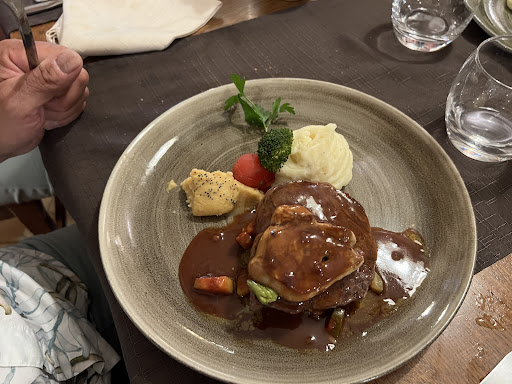 Read moreWir waren sehr gespannt auf unser Abendessen in diesem Restaurant, da es aufgrund der überragenden Bewertungen vielversprechend schien. Bereits von außen strahlte es einen romantischen und verspielten Charme aus, der unsere Neugier weckte. Die Inneneinrichtung des Restaurants wirkte klassisch, bodenständig und charmant. Es war angenehm, sich in einer solchen Atmosphäre niederzulassen. Das Personal erwies sich als äußerst bemüht und freundlich. Sie empfingen uns herzlich und sorgten dafür, dass wir uns wohl fühlten. Allerdings fiel auf, dass sobald das Restaurant voll besetzt war, eine gewisse Hektik und Unruhe spürbar wurde. Dies könnte möglicherweise zu einem gewissen Grad den Gesamteindruck beeinflusst haben. Die Speisekarte des Restaurants war beeindruckend und bot eine Vielzahl von Auswahlmöglichkeiten. Die Gerichte wurden wunderschön präsentiert und waren qualitativ sowie geschmacklich in Ordnung, wenngleich sie vielleicht nicht ganz den überragenden Erwartungen entsprachen, die aufgrund der Bewertungen geweckt wurden. Ein Pluspunkt war zweifelsohne die Verfügbarkeit von Parkplätzen direkt vor der Tür des Restaurants. Dies erleichterte unseren Besuch erheblich.