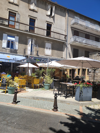 And so we decided to have dinner there, as the staff was very pleasant and attentive, and a board outside promised a 280g cheeseburger made of "fin gras du Mézenc" -- literally "fine fatty (veal) of the Mézenc", a very local type of organic veal raised on the finest grass and wild plants of nearby Mount Mézenc, known for its specific taste (imparted by wild fennel and other plants), great marbling and tenderness. I just had to try...