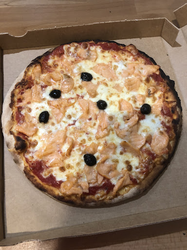 Sinon la pizza est bien garnie ce qui fait que la pâte reste légèrement molle, les bord sont futilement brûlés mais je suis contente parce qu’il y a du vrai saumon avec la bonne quantité. La sauce tomate au légumes vert ok mais pas sur du saumon , prenez la au jambon , chorizo ou la Roxanne