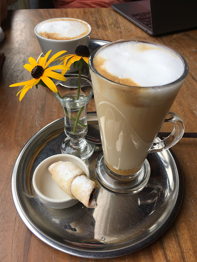 Read moreExtremely welcoming and polite service. I’ve never seen coffee served with a flower in a small vase , that was a beautiful touch, I’m impressed. Coffee was good, although capuccino and latte tasted 100% the same. Chocolate cake with strawberries was not too sweet (good amount of sugar) , it didn’t have much taste though and was a bit dry , may be I picked not the best one, but the way cakes look is very beautiful. I recommend this place to visit, cozy interior, beautiful view to the church, tasty coffee and LOTS of cakes...
