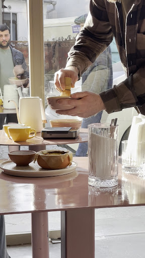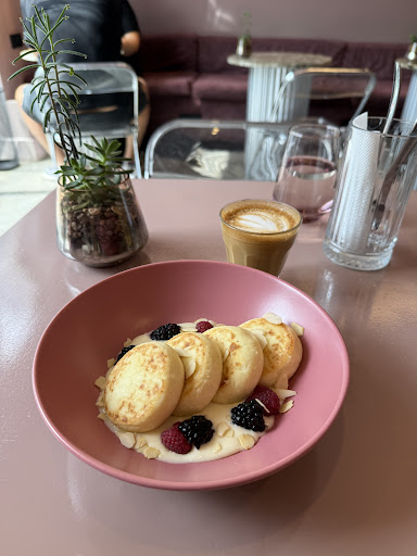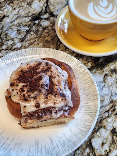 Such a cool place for meeting with friends or eating alone but a bit crowded and noisy tbh, so not suitable for a calm time or working time. I had cinnamon roll and foccacia sandwich with truffle mushroom. The cinnamon roll was the best one I have ever eaten in my entire life (and i am a huge cinnamon roll fan who tried almost everywhere), big congrats to the bakery chef! It was so delicious that I will definetely go back there before I leave Batumi to buy some. The sandwich was not my cup of tea for several reasons but overall everything was great. Also they are very pet friendly, they gave my dog treat...