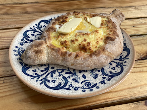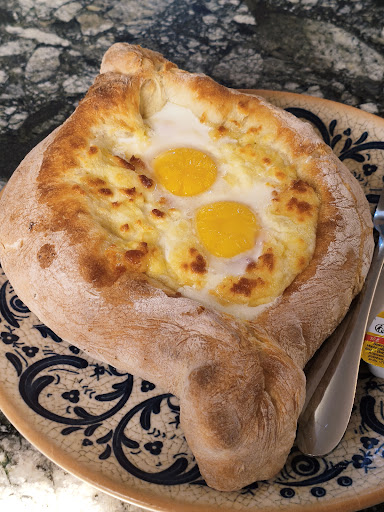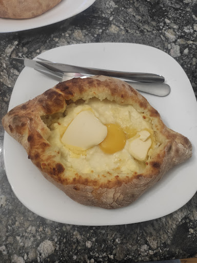 But They Do Have Great Khachapuri I ordered the Adjarian khachapuri. It was served without the soft bread inside (mostly removed), with egg and butter on top. The dough was perfectly baked—crispy and golden. The cheese could use a bit more salt, but you can add it yourself. The portion is big, definitely enough for two people.