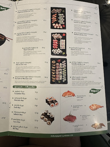 Read moreПлохо. Очень плохо. Зашли поужинать, четверо взрослых и ребенок. Заказали 2 колы, сок, воду, 2 сета с роллами и на десерт Моччи (заказали сразу , как сели за стол!). Ресторан был пустой, но потихоньку начал заполняться после того, как мы сделали заказ. Напитки нам принесли спустя минут 40!!! При этом столам, пришедшим позже, напитки вынесли намного раньше нас. Нам же все приносили после напоминания и по очереди (девушка бегала за каждой банкой и стаканом отдельно, хотя заказ был сделан одновременно). Спасибо, что хотябы первый напиток был для Ребенка. Сеты свои мы получили часа через 1.5 после того как их заказали. Напомню: ресторан был пустой, когда мы делали заказ. Как можно готовить роллы 1.5 часа для меня загадка. При этом принесли сеты недоделанные! В умаи сете не было шапки у роллов, в роял лососе не было чукки на ролле. Качество скрутки роллов отвратительное! Все разваливалось! Порезаны были абы как, очень жалею , что не запечатлела это творчество около поварского искусства. По вкусу…. Никакие… возможно на нас повлияло все описанное выше, то ли мы были ооочень голодные после прогулки и долгого ожидания, но проглотили все без восторга. Чисто утолить голод. Посуду ни разу не убрали со стола. Сидели с горой грязных тарелок. Про заказанный с самого начала мотти видимо официант забыла напрочь, тк после напоминания она принесла его замороженный настолько, что он был каменный! Это было последней каплей) естественно уже не было никакого желания ожидать, когда он растает и я поем хоть что-то вкусное с этом заведении. О чем мы и известили девушку , и попросили забрать этот кусок льда, и принести нам счет. Вместо счета к нам пришёл разьяренный повар с моим отказным десертом) излишне эмоционально пытался объяснить, что этот десерт нельзя хранить в размороженном виде и необходимо подождать минут 10, пока он растает. На наши доводы о том, что сотрудники должны были самостоятельно обеспечить разморозку этого комочка, достав его из морозилки минут за 5-10 до подачи, а не тащить кусок льда на стол после напоминания гостя ) но, услышаны мы не были, из-за языкового барьера) Грузинским не владеем, вышедший к нам повар не владел в достаточной мере русским , а наш уровень Английского не позволил полноценно донести свою мысль.