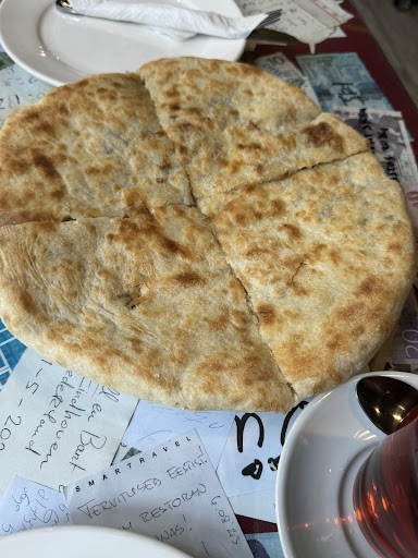 We came here because we were told Laila has the best kubdari in all of Mestia. We were not dissapointed. Note: we came in the morning and we were informed kubdari is made only after 2pm at the restaurant, so keep that in mind. We came for the second time in the evening and reserved a table to see the music program at 8:30pm. It was incredible, with traditional songs and dances. Service can be described as “georgian” or “eastern european” but this is expected everywhere in Georgia. Great coffee, great chvishtari, normal greek salad and good matsoni. As for the bad reviews, I saw that most of them are from Russians. For us Georgians, this is always a good sign. I was happy to see many Ukrainian flags and writings, and no Russian language on the menu which has no place in our country. If you support Russia, you are welcome to go back to Moscow. If you don’t, I think you will like this restaurant.