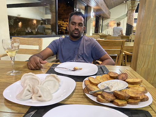 When we first arrived, we almost thought the restaurant was closed because there were no other guests inside. Luckily, a very kind waitress assured us they were still open for another hour – and we are so glad we stayed! We ordered eggplants with walnuts, roasted chicken with walnuts, traditional sausages, and Mexican potatoes, accompanied by a bottle of wine. The portions were far more than the two of us could finish – and every single dish was incredible. The chicken, in particular, was out of this world: perfectly soft on the inside yet unbelievably crunchy on the outside. Every bite was bursting with flavor, and you could tell everything was made with care. All of this, plus the wine, was just 100 GEL – amazing value for such an unforgettable meal. This was by far the best food we’ve had in Georgia, and we’ve tried plenty of places! I can’t recommend this restaurant...