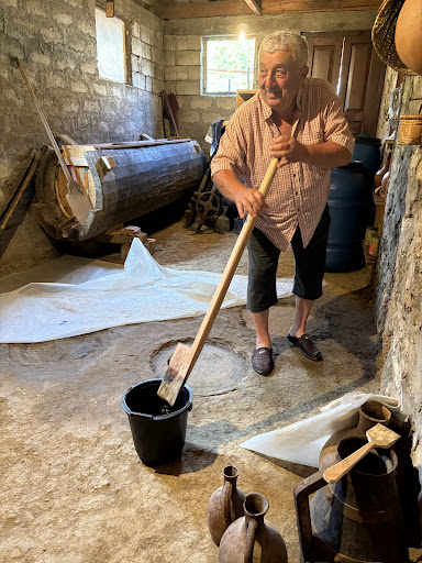 Read moreВ понедельник приехали в это место в конце рабочего дня, боялись, что вдруг мы слишком поздно. Мы не звонили, приехали просто по отзывал в гугле. Хозяева нас радушно встретили, вышли из дома, чтобы показать нам дорогу. Ради нас двоих хозяин дома провел нам экскурсию, рассказал про изготовления вина, откупорил квеври, чтобы угостить нас вином- оно было прекрасно. Мы с удовольствием попробовали и белое и красно, также очень приятный ликер на розе. Мне, как девушке, он очень понравился- легкий, в меру крепкий, не бьет по горлу- очень приятный и ароматный напиток. Мы купили по приятной цене вино-хванчара, белое вино, а также литр домашнего меда (акация, каштан и полевые травы кажется). Нам очень понравилась и экскурсия, рассказ про то, как изготавливается вино, и дали попробовать домашнего меда, и встретили даже вечером- это очень приятно и ценно. Если вы ищите милые домашние винодельни, где создают вино с душой по вековой традиции предков- я настоятельно рекомендую это место. В отзывах есть табличка с номером, на первом номере отвечает хозяин, он говорит по- русски. Лучше заранее позвонить, вам расскажут, как добраться, тк место легко пропустить с дороги. Также нам сказали, что заранее можно заказать еду и забронировать комнату для проживания. В следующий раз с компанией мы обязательно еще раз вернемся...