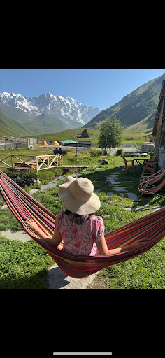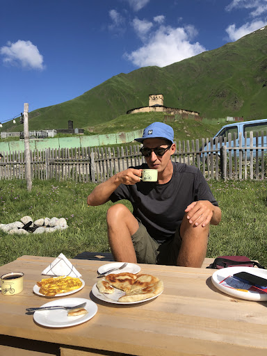 Very beautiful place in the last row from Ushguli, next to the monastery with stunning views in every direction. Free tent place on the property, we stayed two nights so we could simply leave everything in the tent and enjoyed the delicious, freshly made food for breakfast and dinner! Super friendly couple running this place and building tiny cabins on their property at the moment..