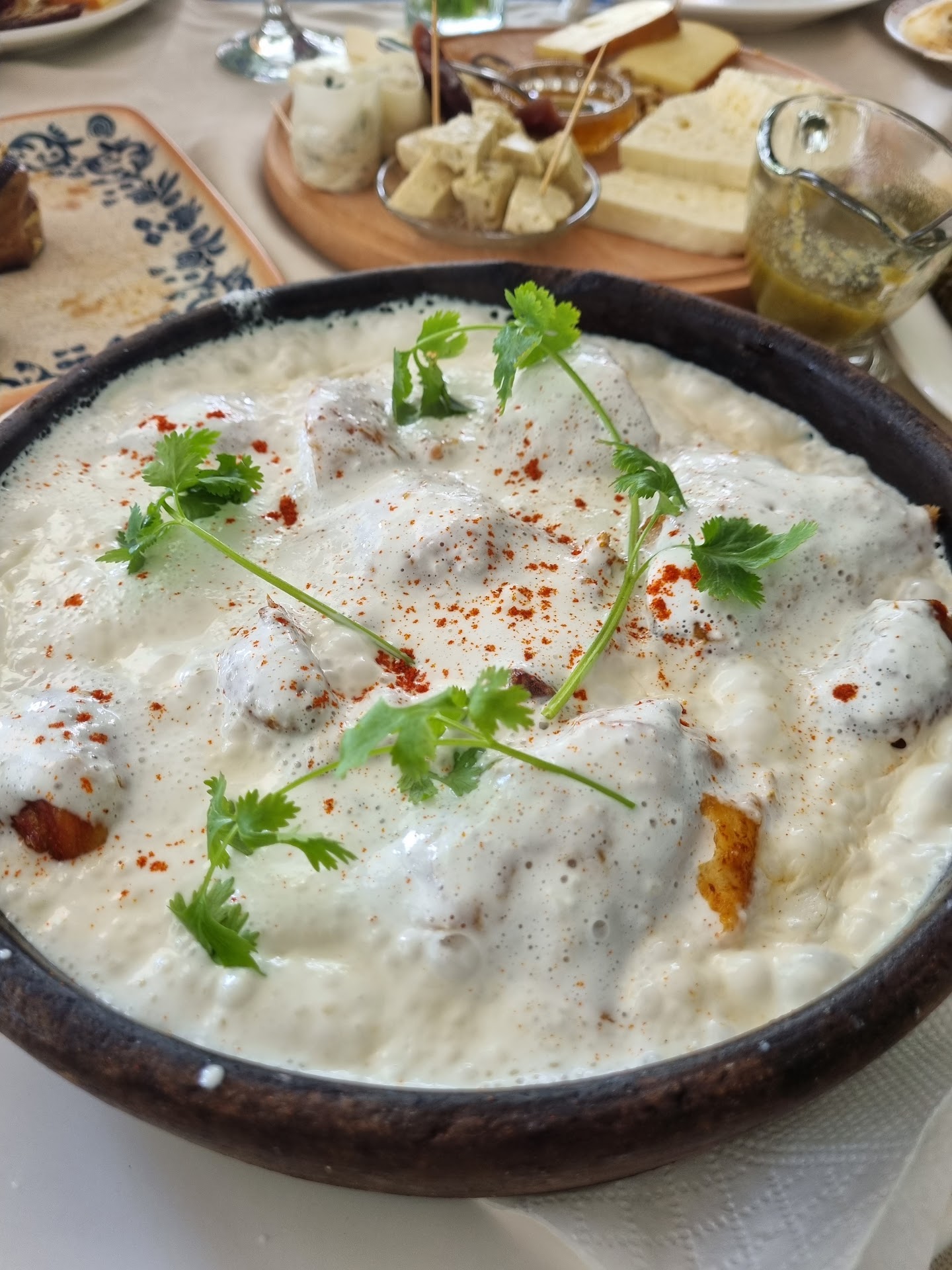 As a vegetarian (and no, not even an egg for me!), I was thrilled with the options. I indulged in their incredible beans in a clay pot, which arrived looking so rustic and beautiful, it was practically a work of art! And the taste? Oh, the taste was even better – rich, hearty, and bursting with flavor. Alongside this, I savored a delightful glass of wine, a comforting bread basket, and a wonderfully prepared ojakhuri with mushrooms. Every dish was a testament to fresh ingredients and skillful preparation, truly satisfying for a plant-based palate.