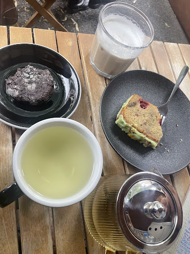 a very cozy little cafe. I got a latte with hazelnut milk and a gingerbread flavoured syrup. the coffee wasn't too strong, and the syrup was really good. I also got a vegan chocolate cookie, and it was really tasty too! very chocolaty with a perfect texture. and it wasn't that expensive either! the barista was very nice, he gave me some recommendations (I don't usually drink coffee, so I would've been a little lost without them), and as you could tell already, they were spot on. the barista also treated me with some tea, and it was very good :)