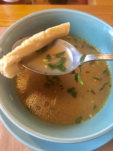 Read moreI ordered chikirtma and fried meat balls and one beer and bread, which was a corn tortilla actually. I was after a night out ,hangovered and hungry. I didn't finish any of the dishes because they were too saulty even for my hangovered cravings.I think the kitchen weren't taisting their own dishes while cooking them,that's why everything is unbearably salty.The staff was unnatentive at the start, I was clearly struggling to pick something up,and before I asked to help, the cashier was just facing me with his back chatting with kitchen staff,but that's nothing. Final check surprised me in a bad way 79 lari for chikirtma(18)+beer(16)+corn salty tortillas (8)+and salty meatballs (19),+18%vat, maybe I am bad at math but I am pretty sure it's supposed to be around 71 including vat.Chek does not list items that you ordered,just a final price. Overall unpleasant,overpriced and I don't recommend it, not coming back definitely. Also, it was uncomfortable to sit at the table, big wooden legged tables with children height. I recommend the owner to go order and eat something from his restaurant, I don't think he will end up happy with overall experience , and kitchen staff should taste their own dishes. If you see that a restaurant at the food court is almost empty, it's probably...