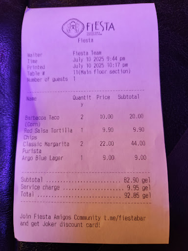 I ordered tacos, nachos and Margaritas. The margarita was tasty but a poor value, as it was tiny and didn't have much tequila in it. For the tacos, I went with beef barbacoa, which was nicely seasoned, but the beef itself was super toughand chewy which made it difficult to eat. I liked the crispy corn shells, but there was no cheese on the tacos, only some kind of creamy sauce. For the nachos, actually just chips and salsa, the salsa was good, but the chips were awful. Instead of using the same good corn tortillas they use for the tacos, they instead use tiny bits of FLOUR tortillas. Why that??