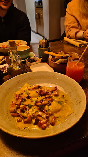 The pizza was delicious. The butternut squash ravioli (with pork) was quite good. The lava cake was OK tasting (I'm sure anyone who's not great at baking would love it, but I think I make a tastier one tbh)... đ The red wine was very good and fruity. The freshly made grapefruit juice was also very good, although more than a bit overpriced.