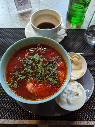 The soup was delightful, and the portions quite generous. I also tried the salo, which was fantastic. It came with a few slices of pickles, which were lovely, and I was even tempted to order more as a side. For a little more than $10, I enjoyed a thoroughly good meal.