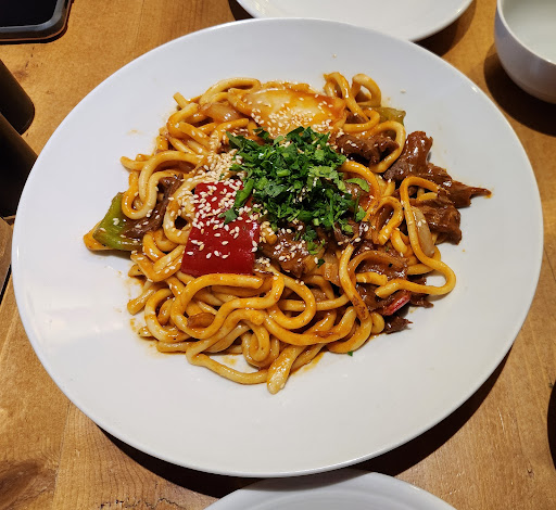 Read moreWe had a wonderful experience here. We sat at traditional low tables on cushions cross-legged. The seating area is downstairs, and upstairs is the kitchen area where you can watch then hand pulling the lagman noodles. Downstairs there was also a TV playing a document about Uyghur culture in diaspora and Uyghur restaurants in London and elsewhere. We got the Uyghur version of kimchi which was incredible, as well as meat Manti served in the steamer basket. The Manti are also served with fresh tomato which was very good. We tried stir fried lagman as well. We had some miscommunication with the staff, but they were very wonderful and fixed the problem. This was my first introduction to Uyghur culture and I would...