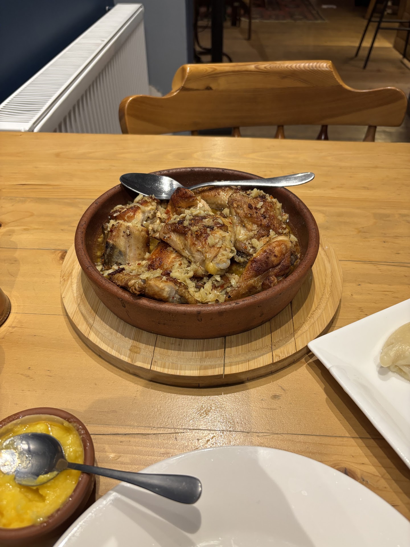 Kade is great example of what Georgian food, can offer you in contemporary Tbilisi. Not ruined by dozens of tourists, this place, offers an authentic taste, balanced with the modern vision of food. The menu, simple but with good option for Khinkali and hot dishes, seasoned with very interesting starter salads. Kade has very good wine cart and what is nice, local beer options. I would say Kade won my heart as very good dinner gathering choice in Tbilisi. The another poin to mention, is the ambience, the nice music, interior and the lights make extra feeling of being in homelike place as if invited by great Geaorgian friends. So I would recommend Kade as very good local cuisine place and unless you are not extremely hungry, you shouldnot approach it. Service personell is on top, they host andd serve you in a very polity, I would say great way which adds extra value to the time spent at Kade. All in all, I would advise Kade for madium up to 6-8 person group dinners as well as for the friends fatherin or even just dinner for...