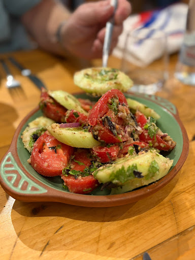 Read moreTijdens een wandeling kwamen wij bij toeval langs dit leuke restaurantje. Bij binnenkomst werden wij vriendelijk begroet. Het restaurant is knus en sfeervol ingericht. We wilden een khinkali proberen. De serveerster was vriendelijk en adviseerde om eerst een lekkere salade te nemen. Een tomaten salade met komkommer, ui en fijn gemalen walnoot was lekker. Daarna de Khinkali met vlees. De serveerster zag ons dit gerecht met mes en vork eten, maar dat was niet de bedoeling, dus ze kwam met een bordje en eigen Khinkali erop om voor te doen hoe het wel gegeten moest worden. Weer wat geleerd. Ze zijn prima, maar machtig dus bestel er niet te veel. Na de lunch afgerekend en fooi gegeven vanwege de vriendelijkheid. Zeker een aanrader en bovendien leuk om ook in dit van de stad een rondje...