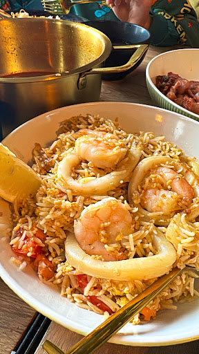 I ordered 4 meals. To be honest, none of the foods are met expectations. Maybe I am the one unlucky. The Tomyam soup is clear red base but tasteless: The crispy pork rice had no favour at all. The seafood portion is quite big. The only food I think it's quite okay is Thai fried rice but I think the chef forgot to add salt: