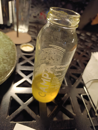 The dough was very oily, definitely not pizza dough. More like Imeruli khatchapuri (a typical georgian dish). And the cheese was 1:1 khatchapuri cheese. It was baked very evenly and bland, a pizza should have brown-black, crusty bubbles and crisp taste.